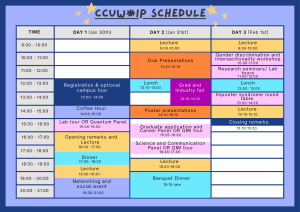 Programme Please note this schedule is still tentative. Updates will be made regularly. If you have any questions, please reach out to us at ccuwip@phas.ubc.ca .