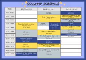 Programme Please note this schedule is still tentative. Updates will be made regularly. If you have any questions, please reach out to us at ccuwip@phas.ubc.ca .
